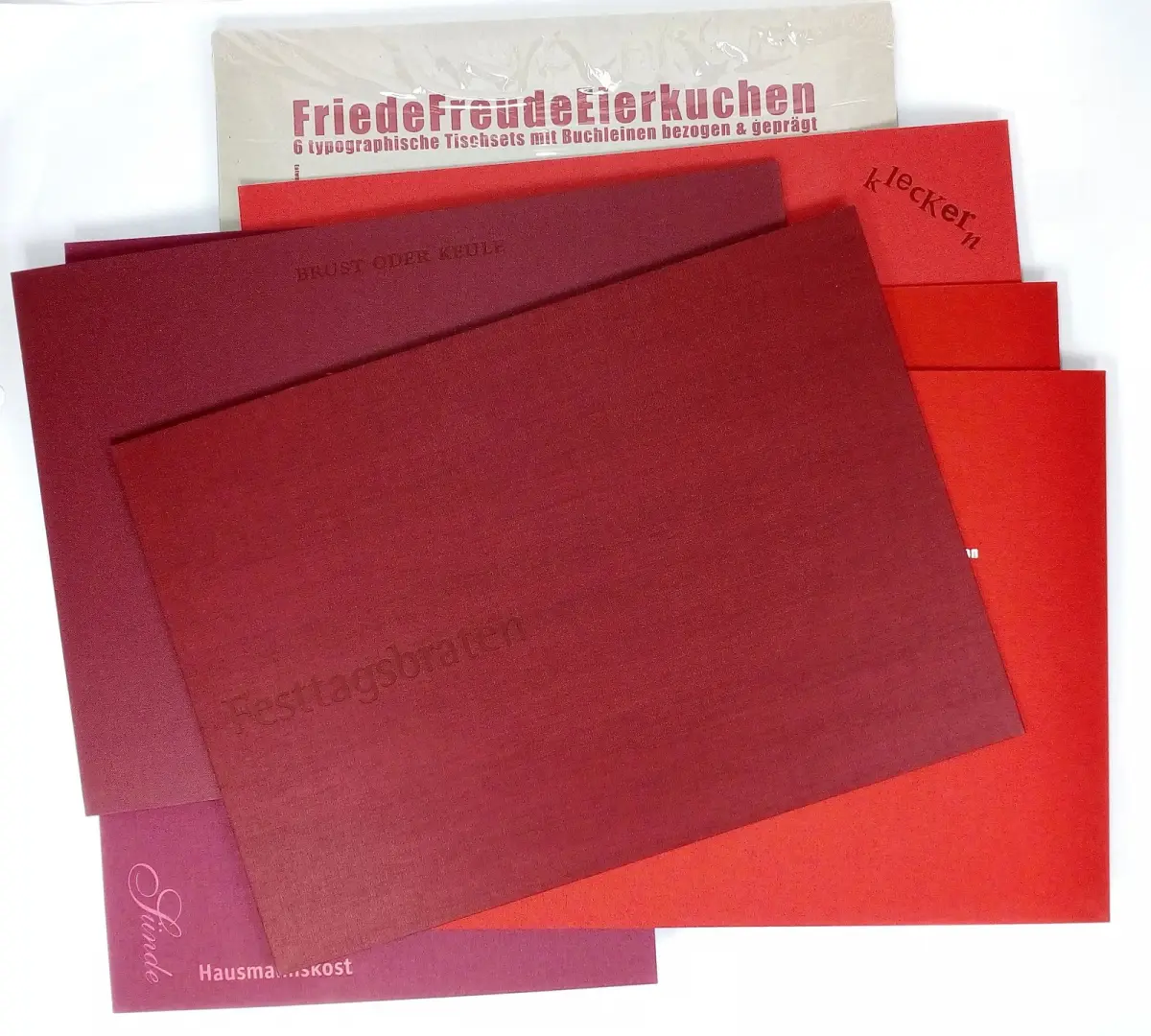 Bemerkungen: Zustand: Kartonhülle leicht berieben, Tischsets sauber und unbenutzt // Buchbinderische Verarbeitung: realwerk Lachenmaier, Reutlingen
