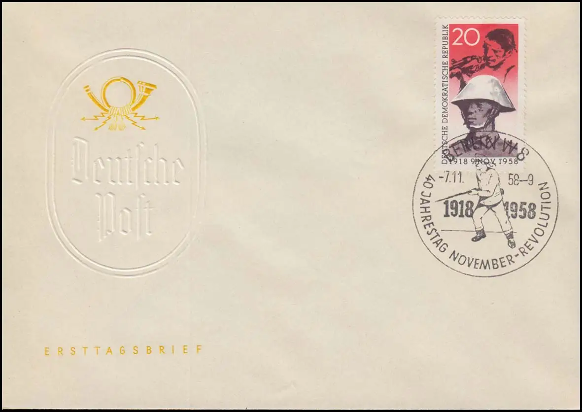 662 Révolution novembre 1958 FDC officiel de bijoux Blanco ESSst BERLIN 7.1.58