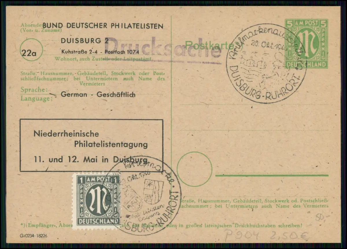 6x Duisburg Ruhrort Esslingen Eschede Lütjenburg 1946 1947 AM Post 2 5 6 8 10 Pf