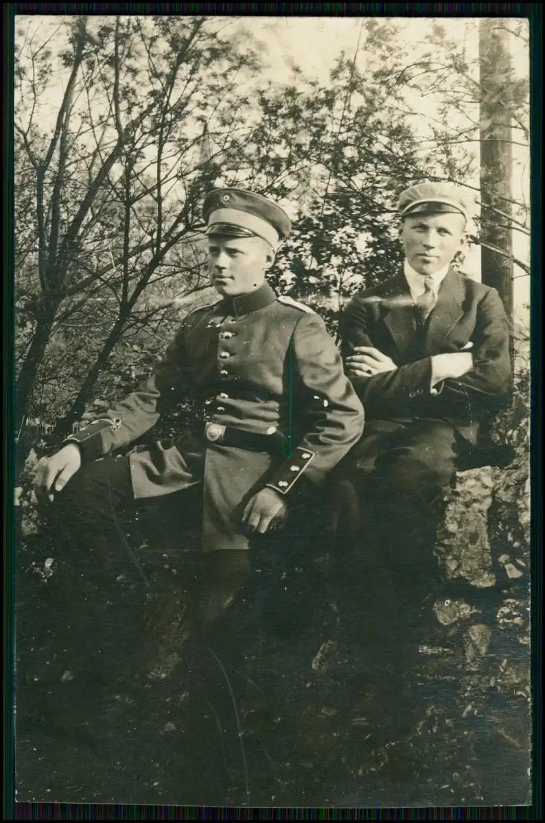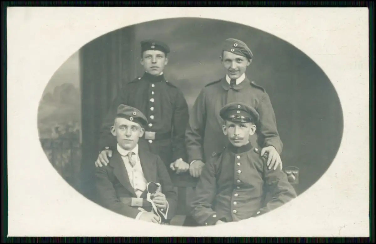 6x Foto AK 1.WK - Soldaten in Uniform - in der Fabrik u. daheim zuhause 1914-18