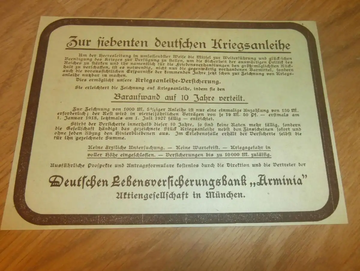7. deutsche Kriegsanleihe 1917 , Arminia , Reklame , Anleihe , Reichsbank , Schuldverschreibung / Schatzanweisung !!AZR-WR