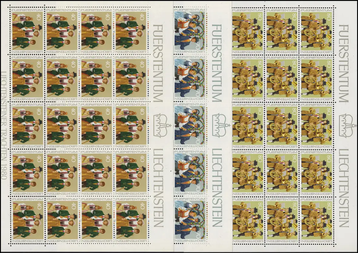 754-756 Chaussettes Liechtensteiner 1980, 3 valeurs, petit jeu de feuilles **