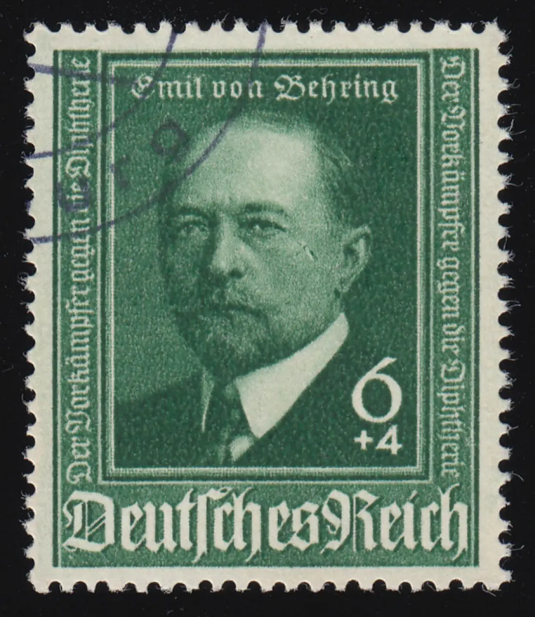 760 III Behring 6 Pf - Plattenfehler Fleck auf rechter Wange, gestempelt O