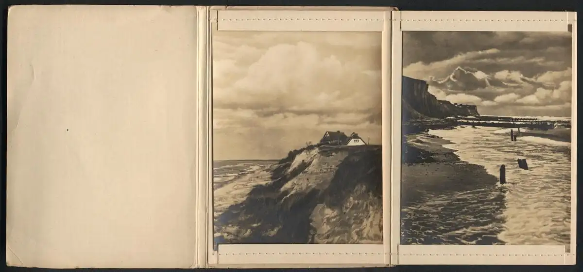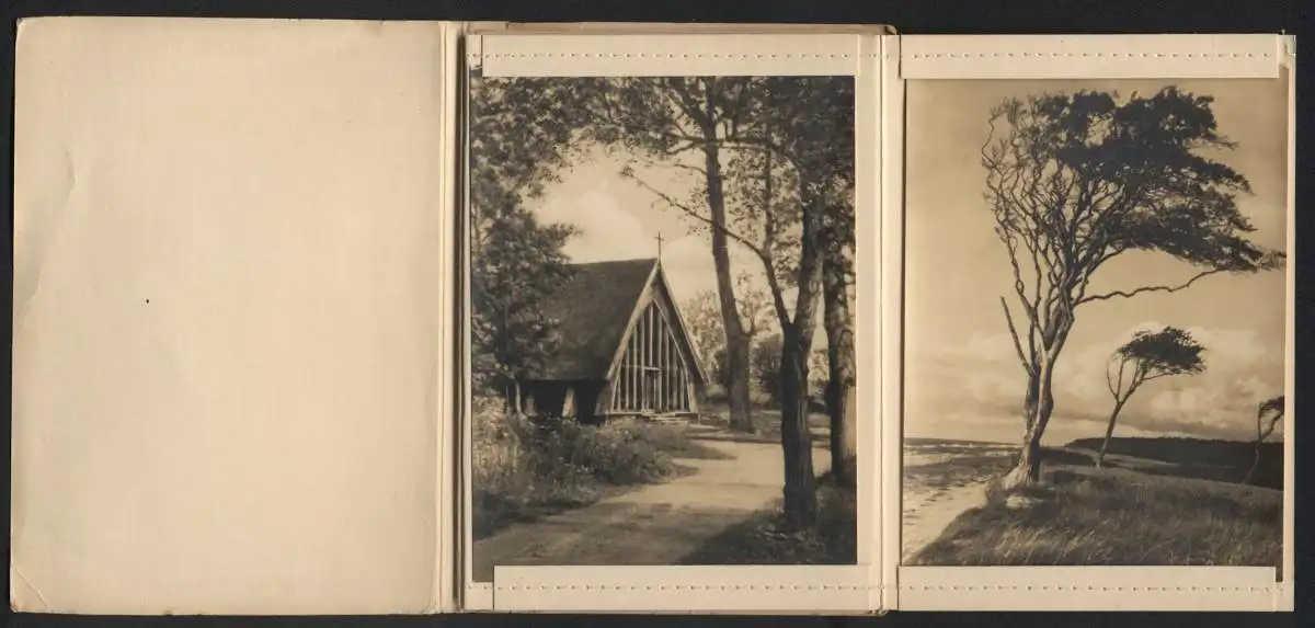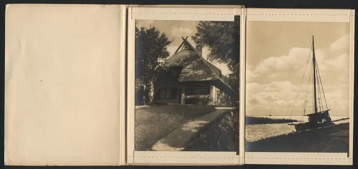 8 Fotografien Fritz Wegscheider, Ahrenshoop, Ansicht Ahrenshoop, Kirche, alte Katen, Fischerboot, Strandpartie