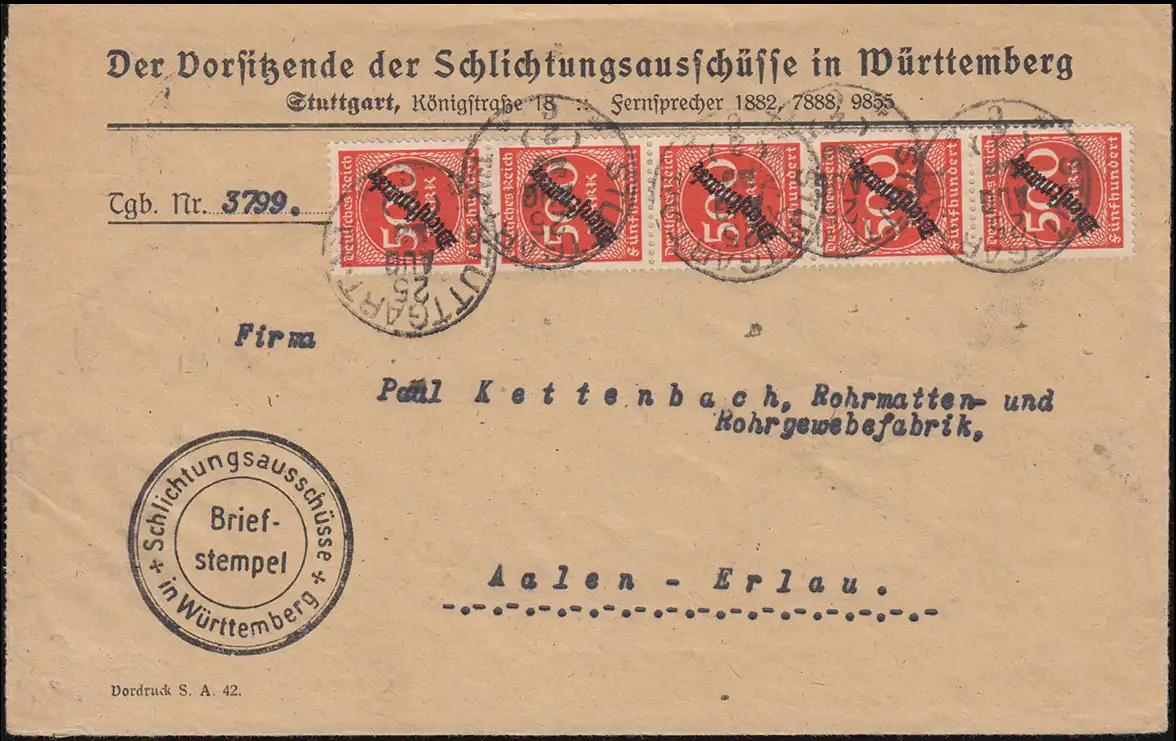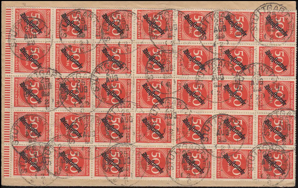 81 marque de service INFLA 40 fois 500 M dans MeF Lettre STUTTGART 25.8.23 après Aalen-Ernau