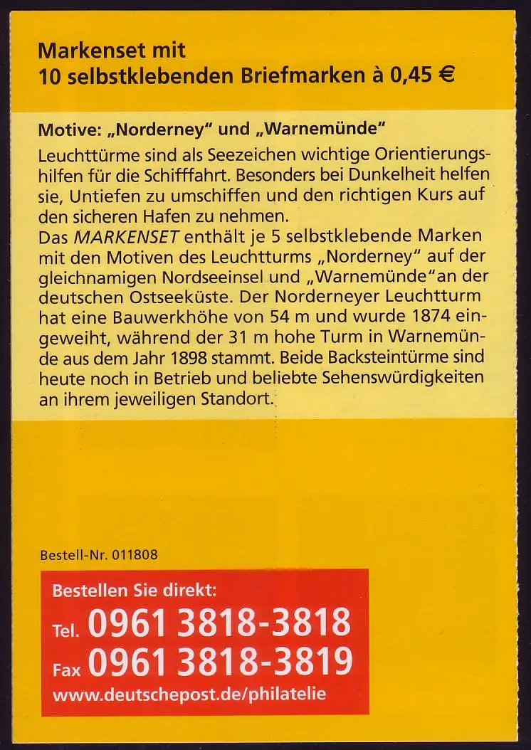86 MH phares 2011, Norderney et Warnemünde post-free **