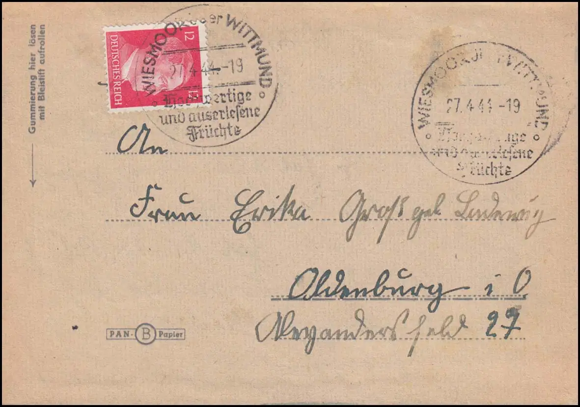872 Freicken auf EF Replifschrifter SSt WESMOOR au-dessus de WITTMUND 27.4.44 vers Oldenburg