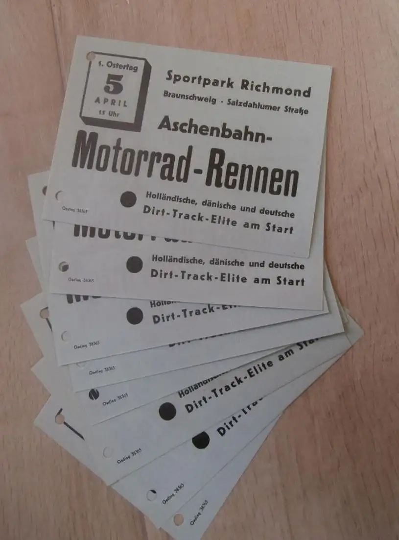8x Flyer / Reklame - Motorrad Aschenbahnrennen , 30er Jahre , Braunschweig , Speedway , Dirt Track , Sportpark , Stadion