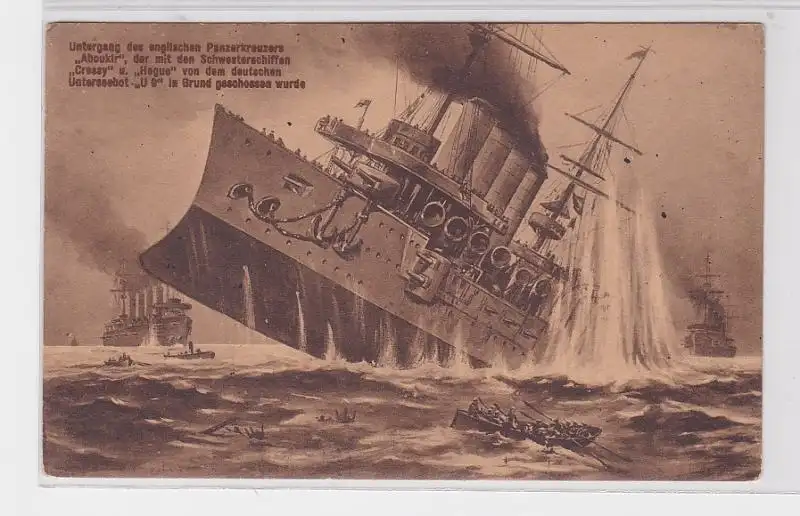 90670 Feldpost AK U-Boot 'U9' vernichtet 3 engl. Kreuzer Aboukir Hogue & Cressy