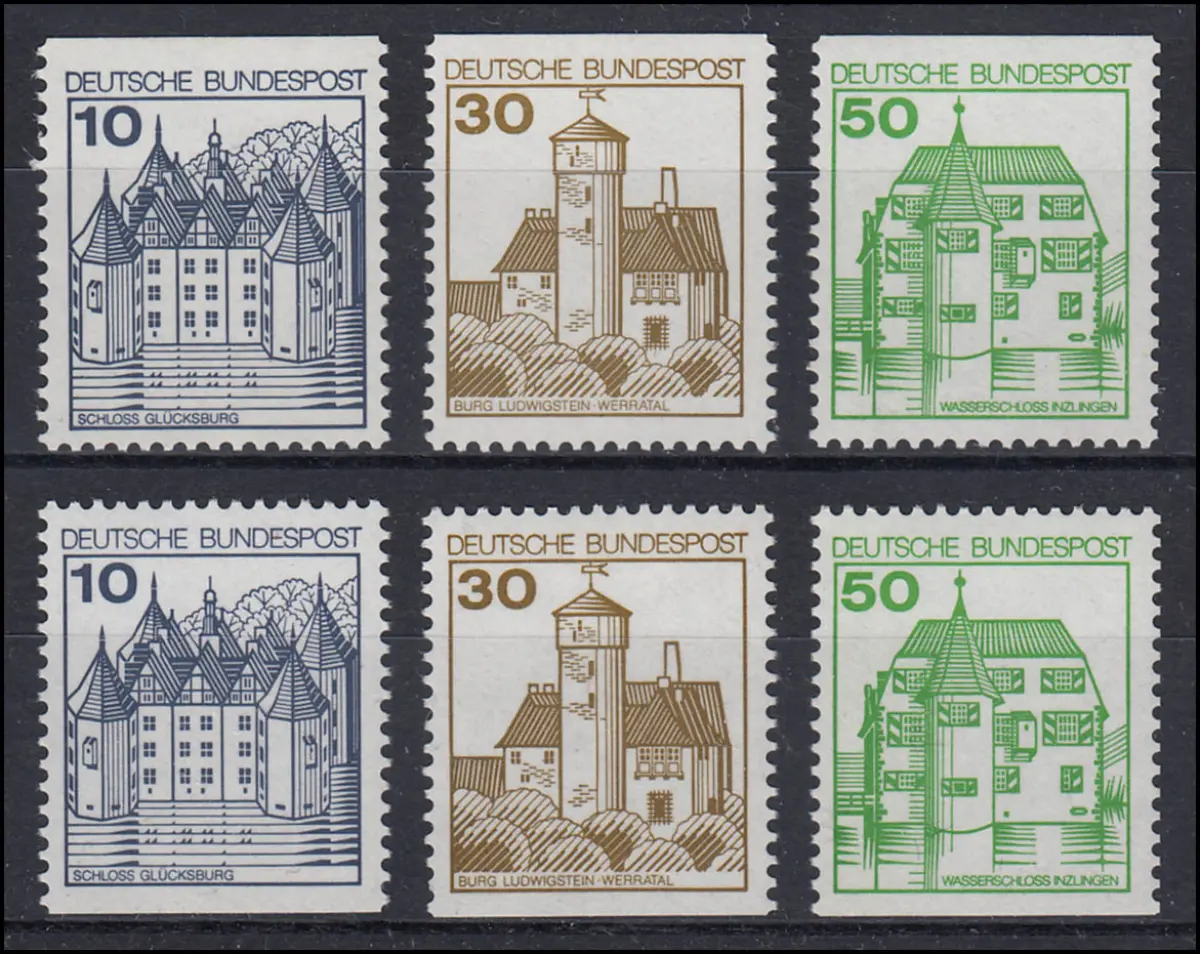 Nachauflage der teilgezähnten Marken aus Markenheftchen in geändertem Druckverfahren, gleichmäßig aufgetragenes Druckbild mit scharfen Konturen: 913 II, 914 II, 1028 II (Letterset) - jeweils als C (oben ungezähnt) und D (unten ungezähnt). Füllen Sie damit die Lücken in Ihrem Vordruckalbum!