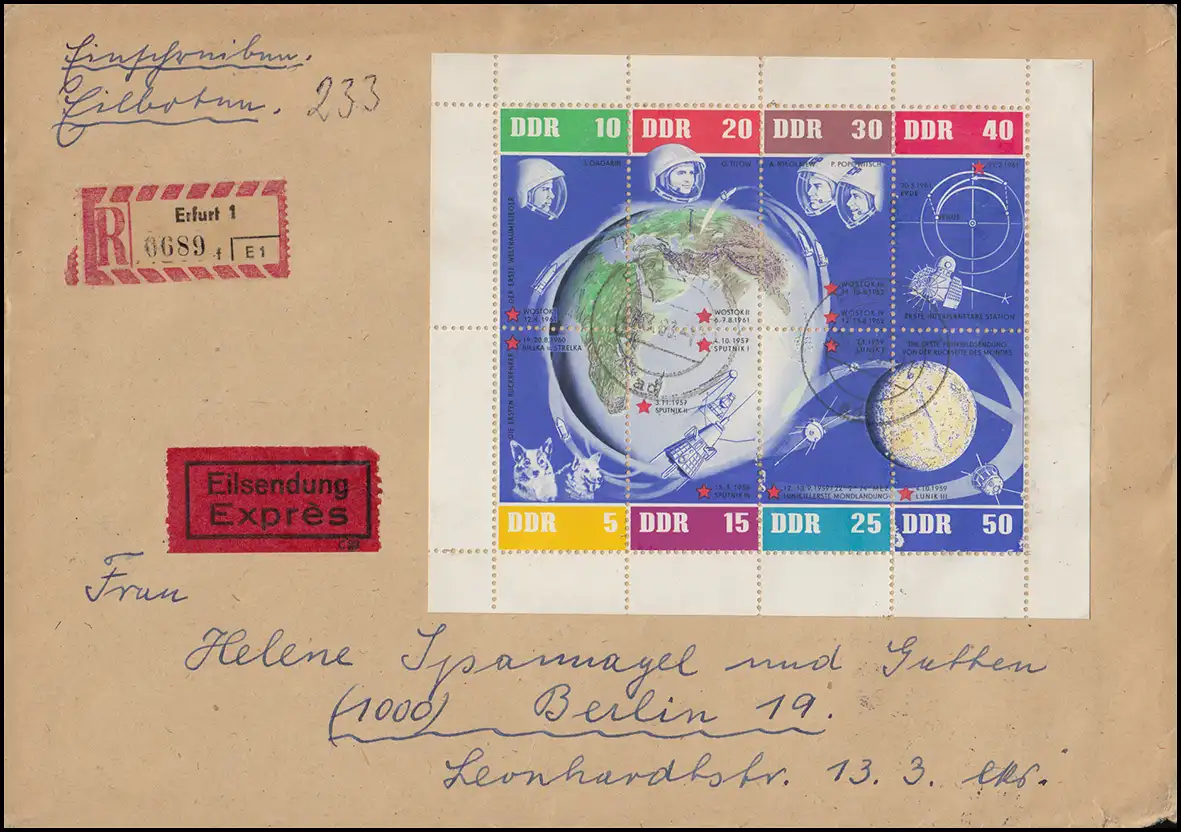 926-933 - Petite arc de vol spatial Eil-R - Lettre EFFERT 29.3.63 vers BERLIN 30.3.