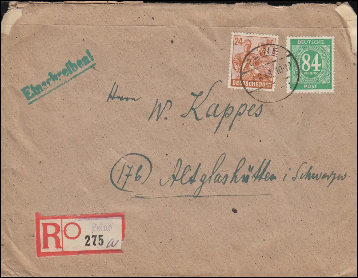 936 + 951 Conseil de contrôle I+II en tant que MiF sur lettre R Not-R-Zettel PEINE 4.8.1948