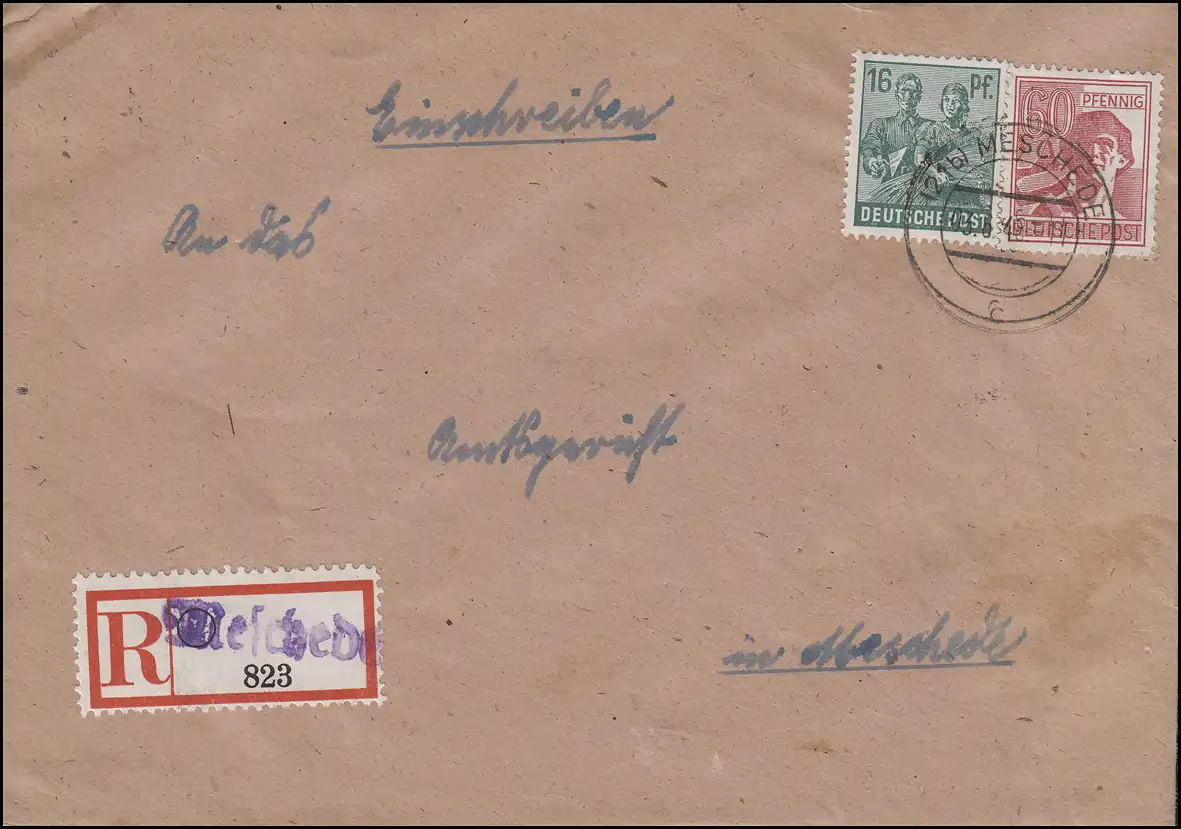 949+956 Conseil de contrôle II - MiF Not-R-Zettel MESCHEDE 3.6.48 sur lettre R locale