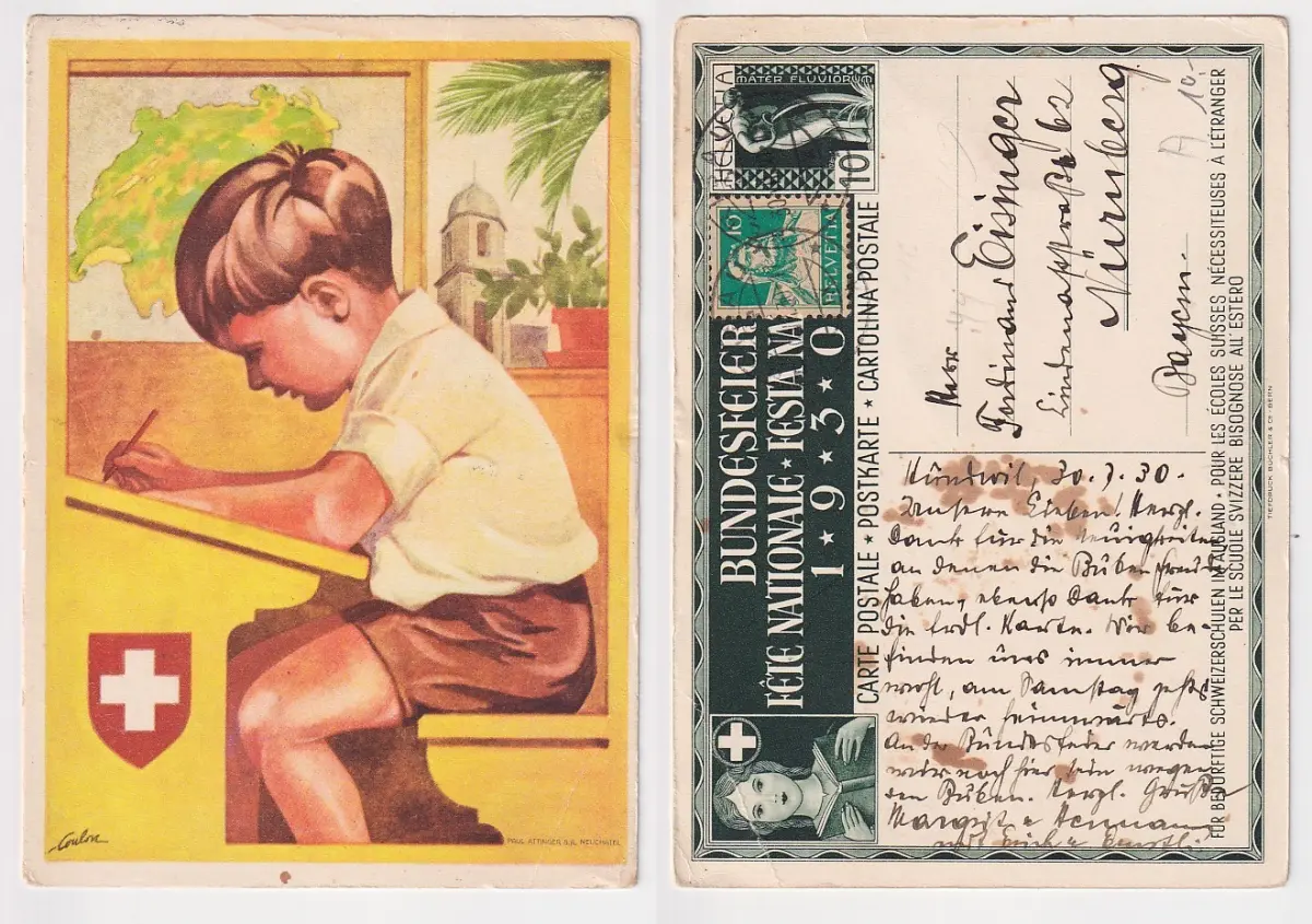 96045 Künstler Ak Ganzsache Schweiz Bundesfeier Rotes Kreuz 1930