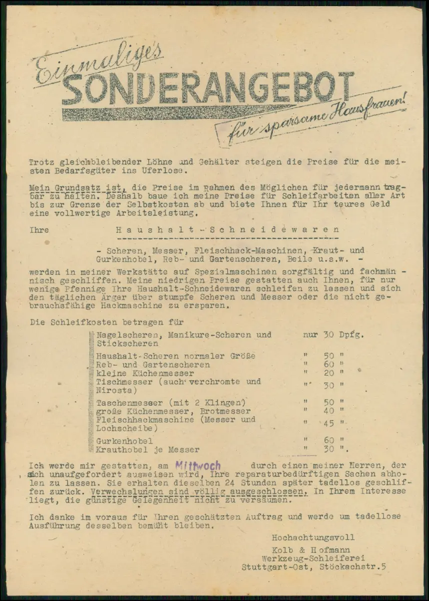 9x alte Belege Prospekte Briefe u. andere - aus Stuttgart alles von einer Person