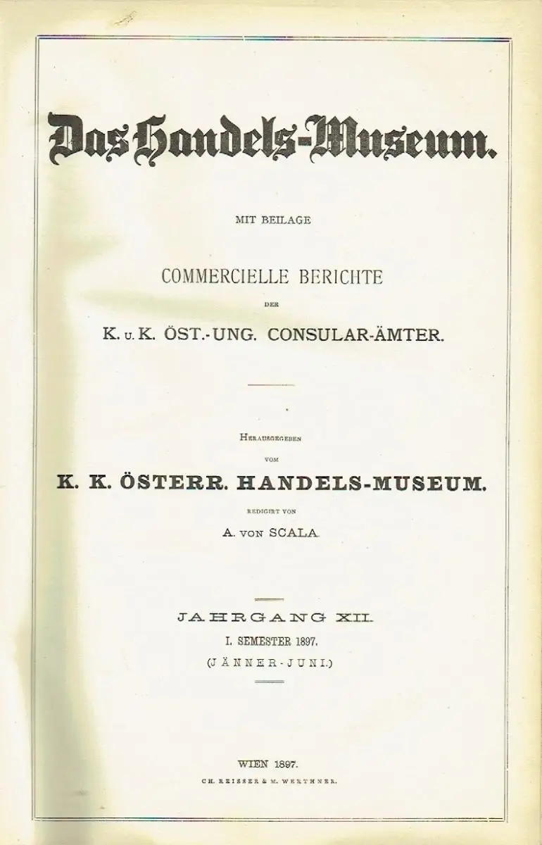 A. von Scala: Das Handels-Museum Mit Beilage Commercielle Berichte der K. u. K. Öst.-Ung. Consular-Ämter.