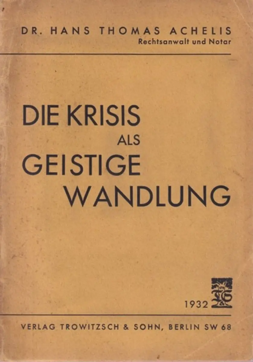 ACHELIS, HANS THOMAS: Die Krisis als geistige Wandlung.