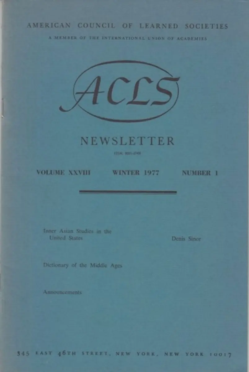 ACLS American Council of learned societies. - Denis Sinor: ACLS Newsletter, volume XXVIII, Winter 1977, number 1: Denis Sinor - Inner Asian studies in the United States / Dictionary of the Middle Ages / Announcements.