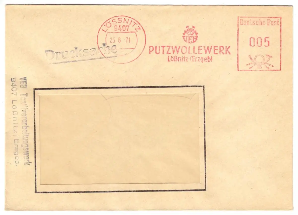 Absender: VEB Textilverarbeitung, 9407 Lößnitz / Erzgeb.
