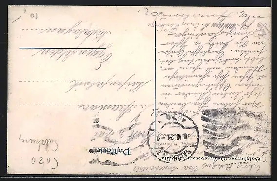 alte Ansichtskarte, gelaufen 1921, Briefmarke entfernt, rückseitig Oberflächenschaden, Bugspur re. unten, guter Zustand