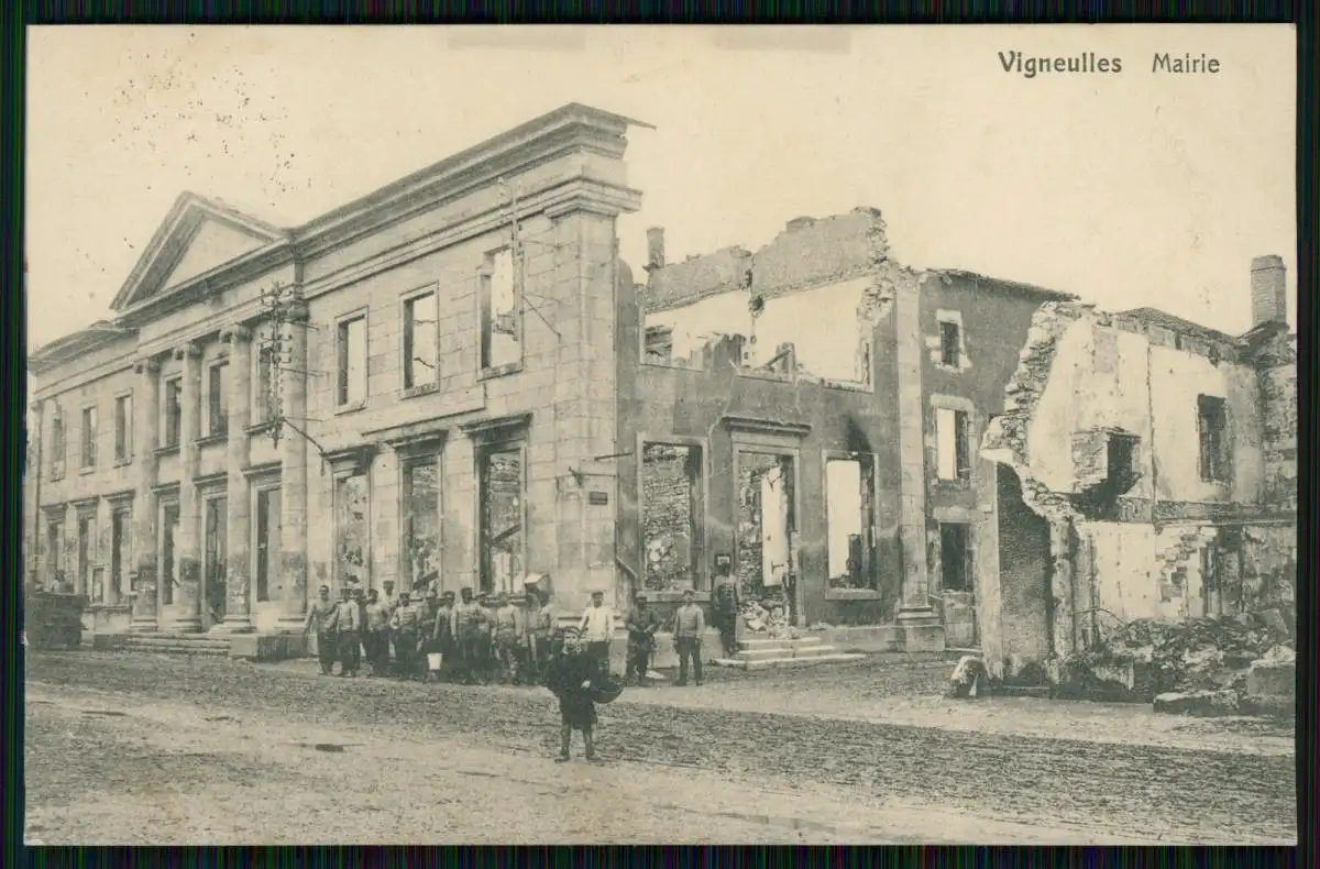 AK 1. WK - Mairie de Vigneulles-lès-Hattonchâtel - zerstört deutsche Soldaten