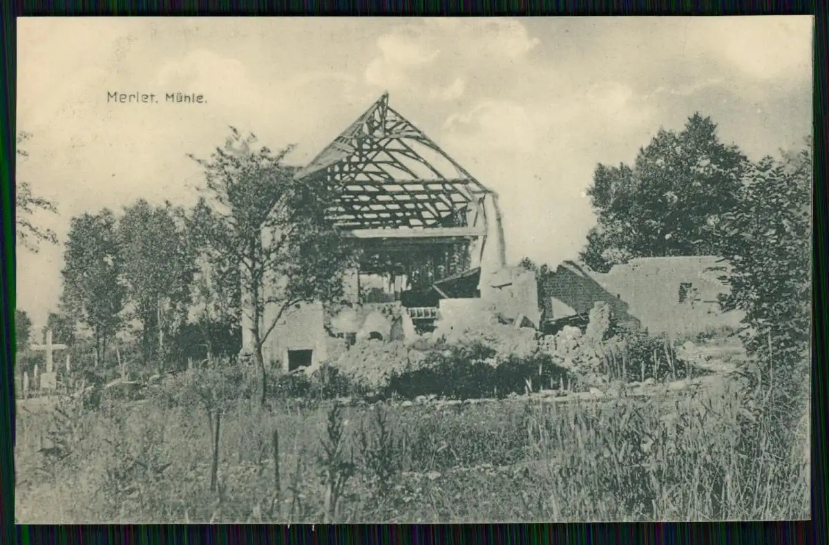 AK 1. WK - Merlet Aisne - Mühle nach Beschießung durch Artillerie - 1916