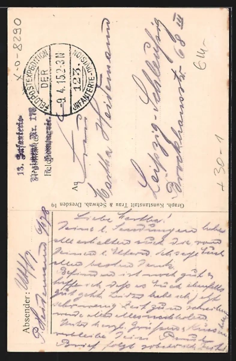 alte Ansichtskarte, gelaufen 1915 als Feldpost, guter Zustand