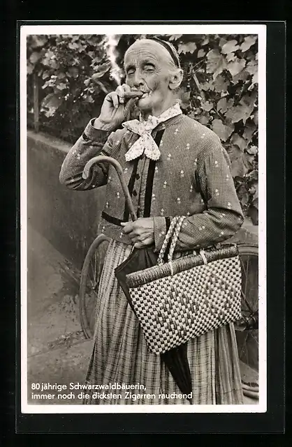 AK 80jährige Schwarzwaldbäuerin immer noch die dicksten Zigarren rauchend