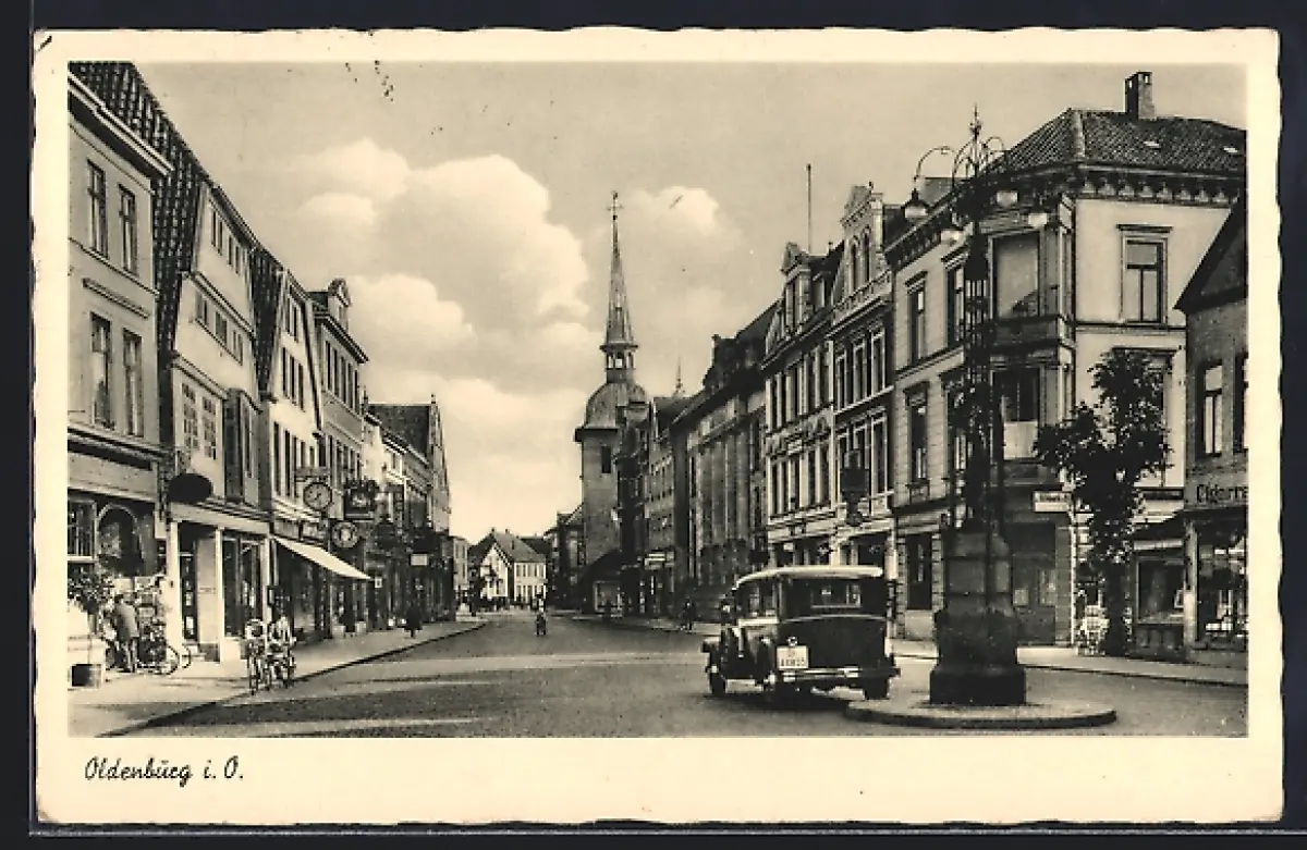 AK AK Oldenburg / O., Heilig-Geiststrasse mit Autos und Geschäften