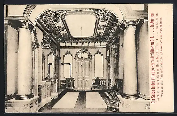 AK Aachen, Salon in der Villa des Herrn Architekten G.L., Werbung für Patent Falztafeln Kosmons