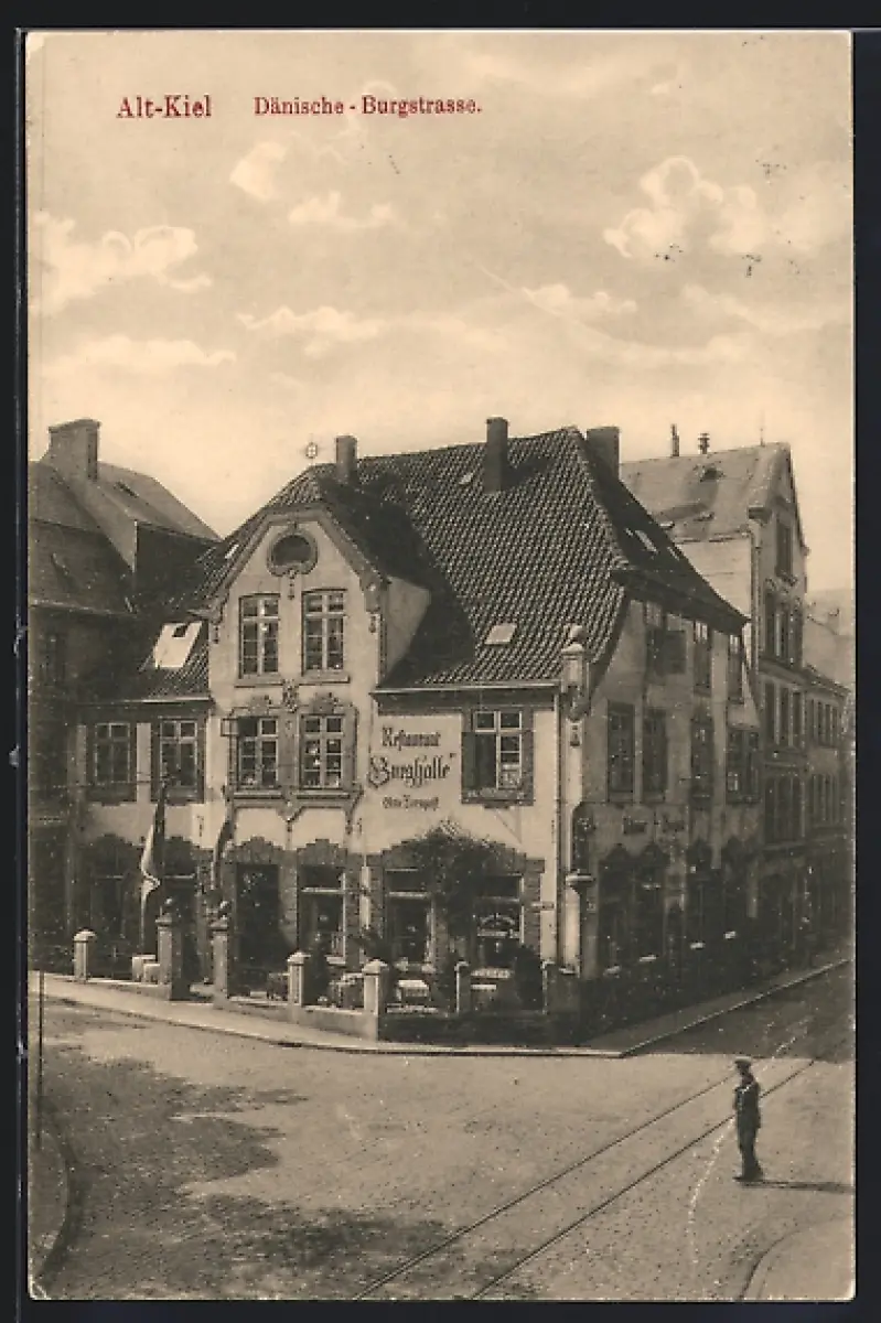 AK Alt-Kiel, Dänische Burgstrasse mit Restaurant Burghalle