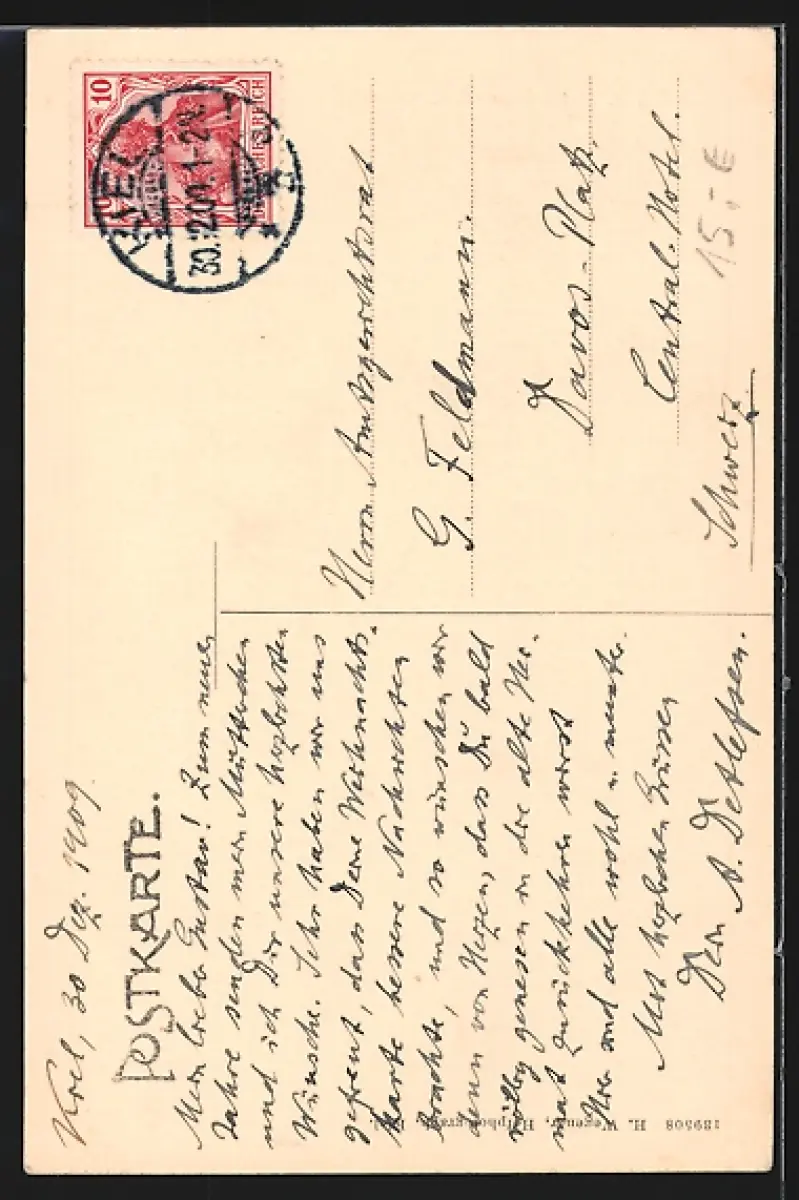 alte Ansichtskarte, gelaufen 1909, guter Zustand