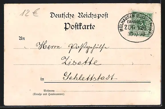 alte Ansichtskarte, gelaufen 1898, guter Zustand