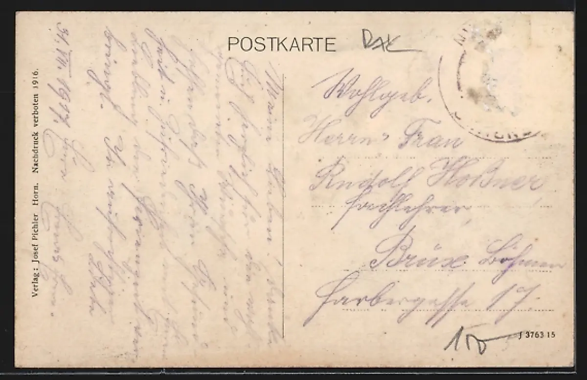 alte Ansichtskarte, gelaufen 1917, Briefmarke entfernt, rückseitig Oberflächenschaden, guter Zustand