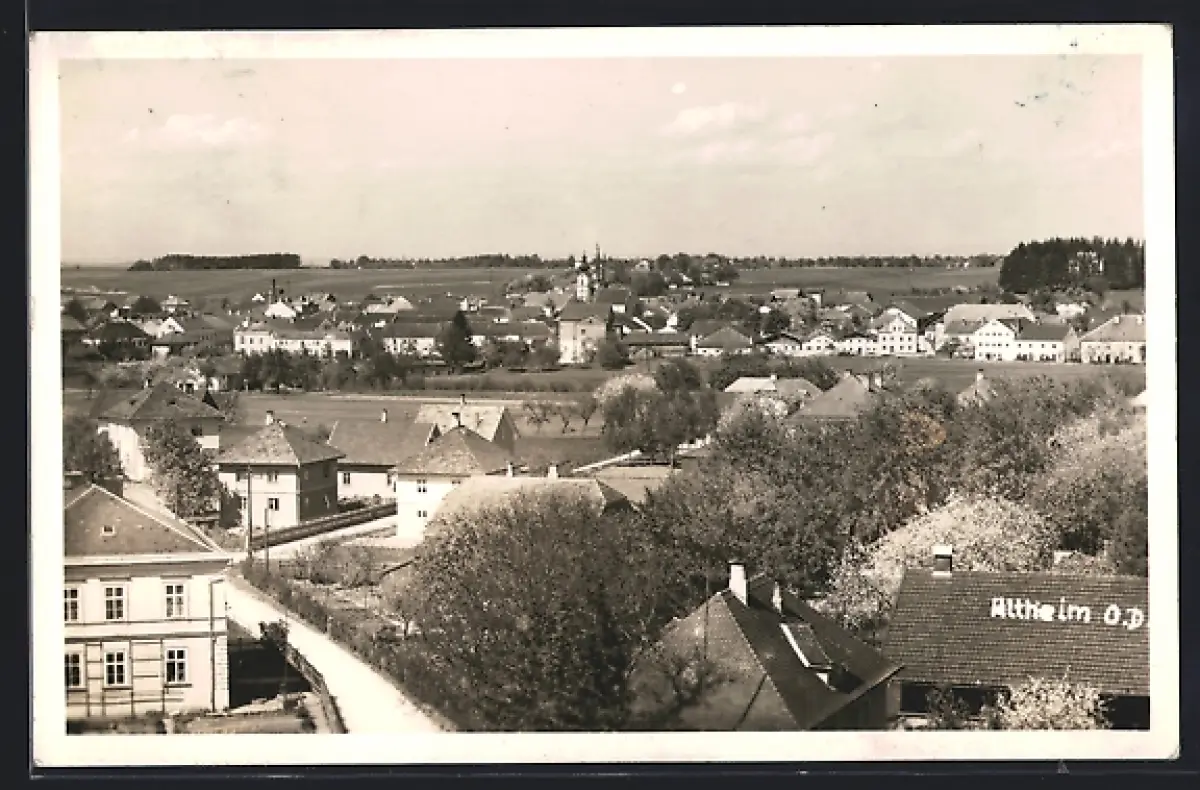 AK Altheim /O. D., Totalansicht mit Strasse aus der Vogelschau