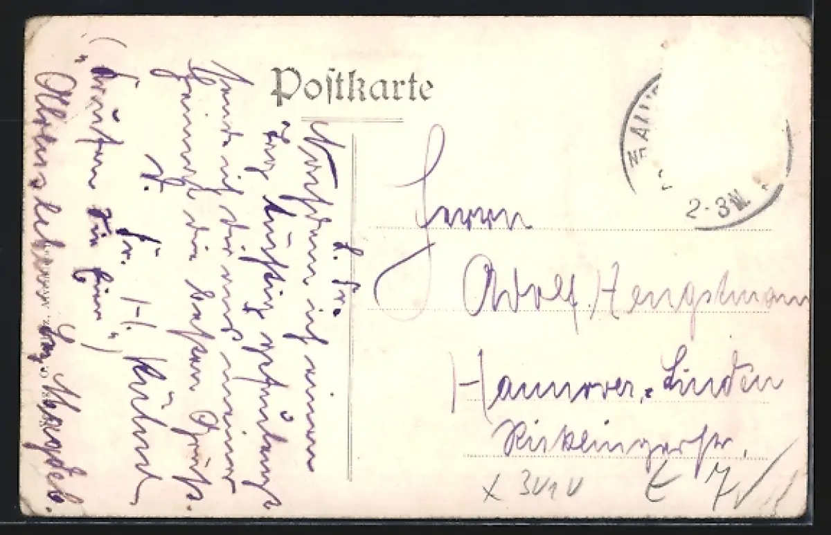 alte Ansichtskarte, gelaufen, Briefmarke entfernt, rückseitig Oberflächenschaden, Eckknicke links u. rechts, guter Zustand
