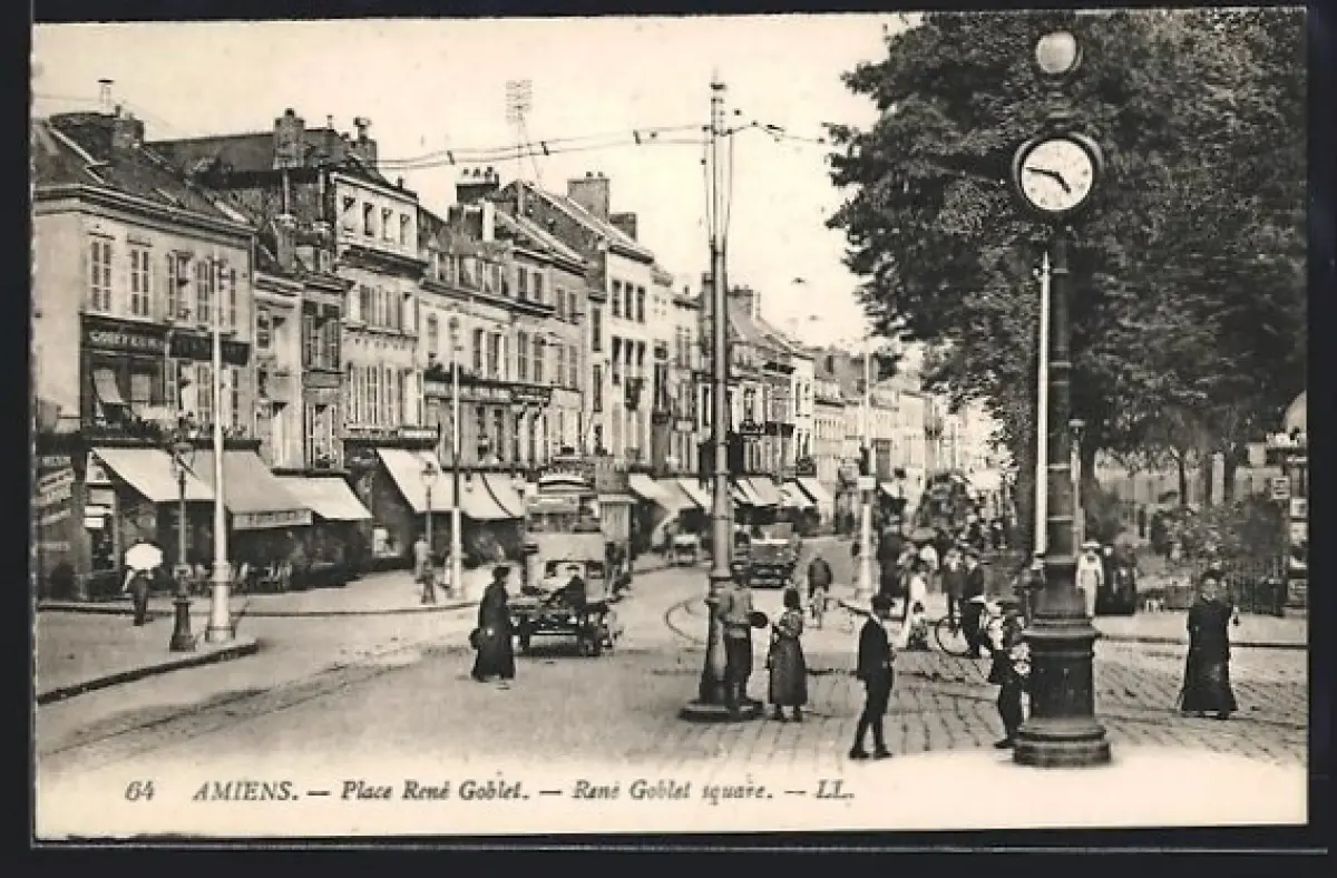 AK Amiens, Place Rene Goblet, Strassenbahn