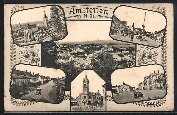 AK Amstetten, Hauptplatz, Bahnhof, Klosterkirche, Wienerstrasse