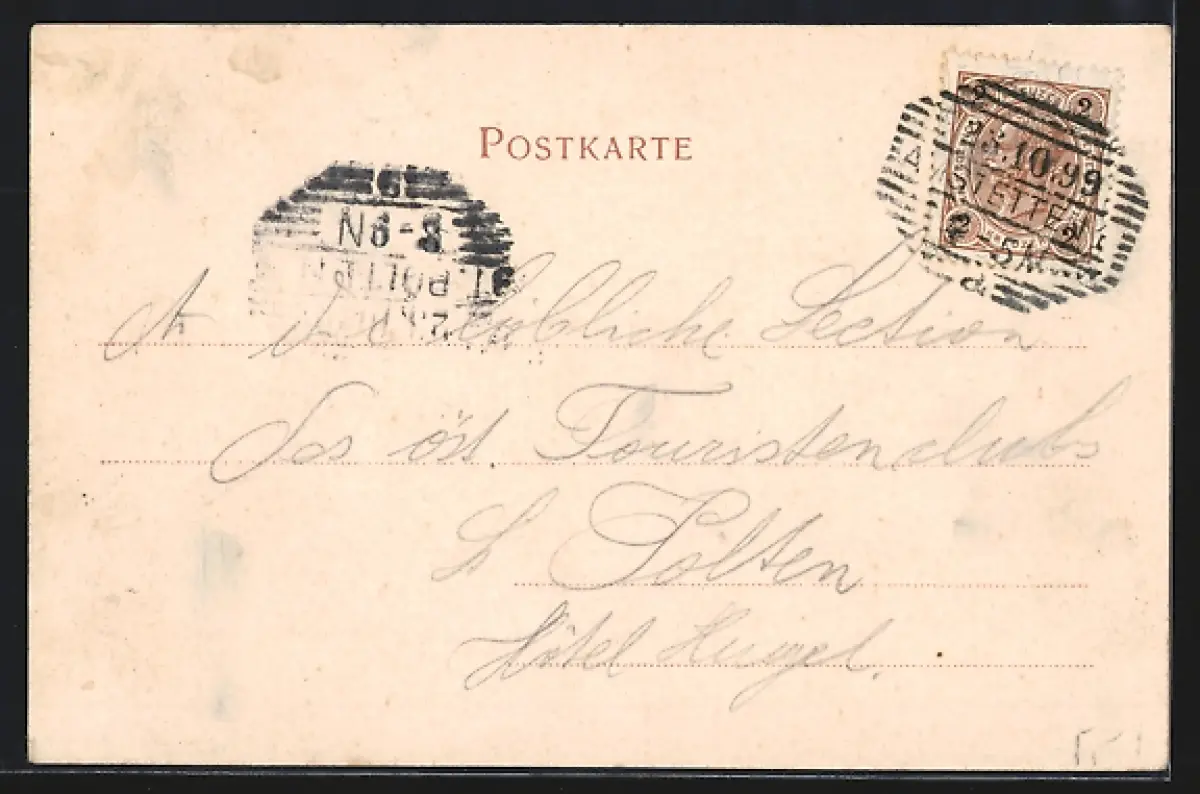 alte Ansichtskarte, gelaufen 1899, Stempelspur, guter Zustand