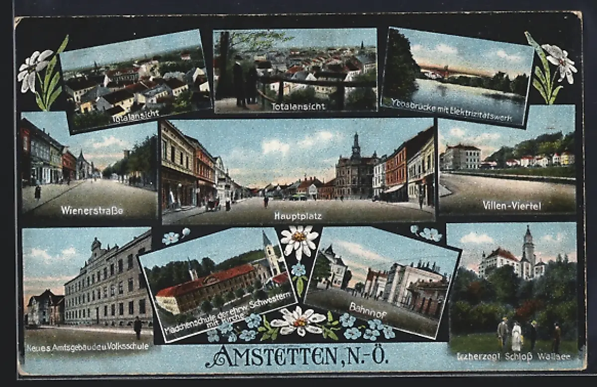 AK Amstetten, Totalansicht, Villen-Viertel, Hauptplatz, Wienerstrasse