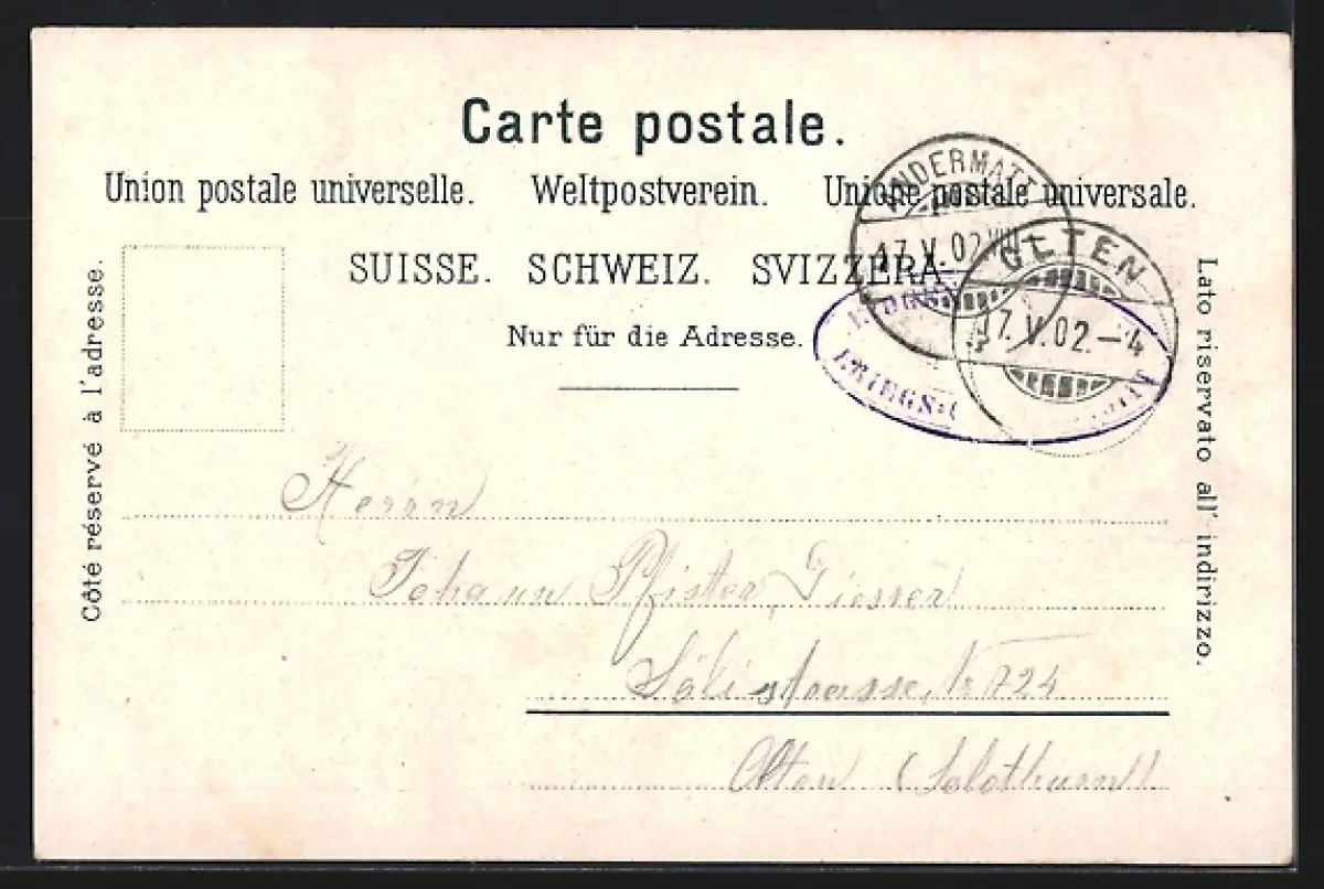 gelaufen 1902, Eckknicke li. oben, guter Zustand