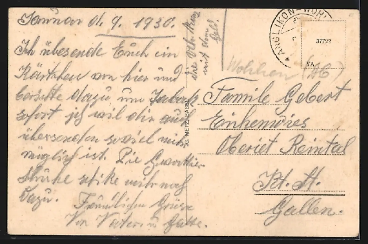 alte Ansichtskarte, gelaufen 1930, Briefmarke entfernt, guter Zustand