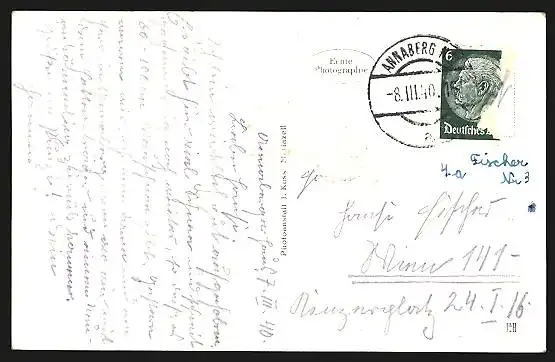 alte Ansichtskarte, gelaufen 1940, Briefmarke entfernt, rückseitig Klebe- und Papierreste, guter Zustand