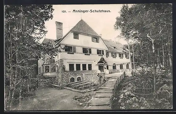 AK Anninger-Schutzhaus, Frontansicht mit Treppenzugang