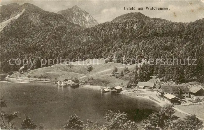 73809878 Urfeld_Walchensee Panorama Alpen Urfeld Walchensee postalisch gelaufen bis 1920 Erhaltung siehe scans [FriedD77] [Frierer ]