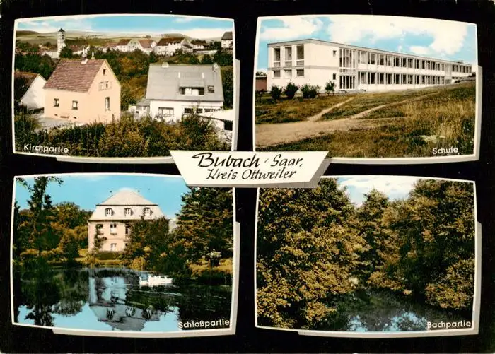 73873725 Bubach-Calmesweiler_Saar Ansicht mit Kirche Schule Schloss Teich Partie am Bach postalisch nicht gelaufen nach 1965 Erhaltung siehe scans [FriedD77] [Frierer ]
