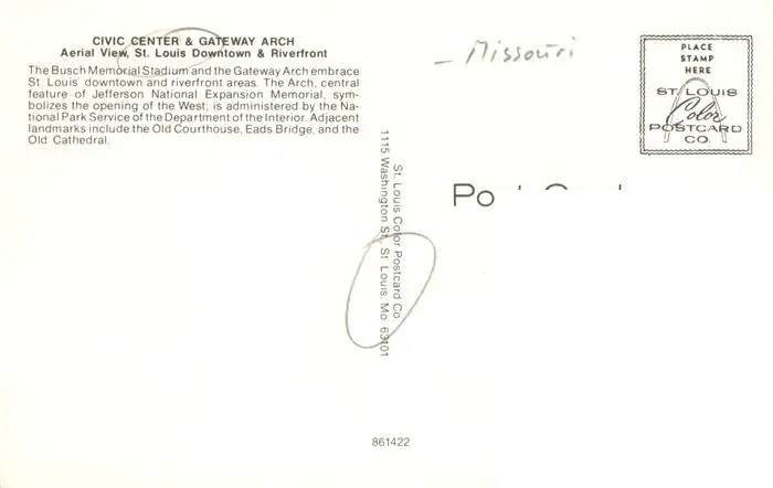 73881136 St_Louis_Missouri_MO_USA Civic Center and Gateway Arch Aerial View postalisch nicht gelaufen nach 1965 Erhaltung siehe scans [WerneD78] [WernPID7 ]