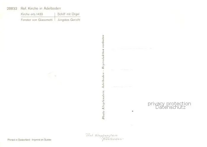 Adelboden_BE Kirche Fenster von Giacometti Schiff mit Orgel Juengstes Gericht postalisch nicht gelaufen nach 1965 Erhaltung siehe scans [WerneD78] WernPID7