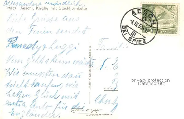 Aeschi_BE Kirche mit Stockhornkette Aeschi_BE postalisch gelaufen 1953 Erhaltung siehe scans [WerneD78] WernPID7