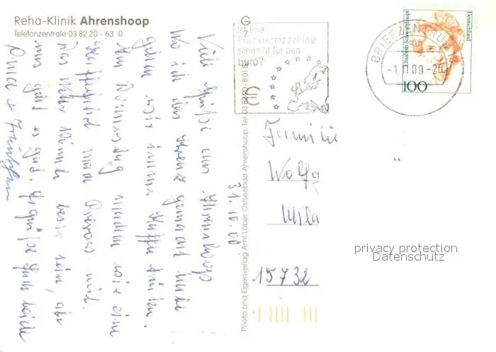 Ahrenshoop_Ostseebad Reha-Klinik Ahrenshoop_Ostseebad postalisch gelaufen 2000 Erhaltung siehe scans [LiesaD40] LiesID40
